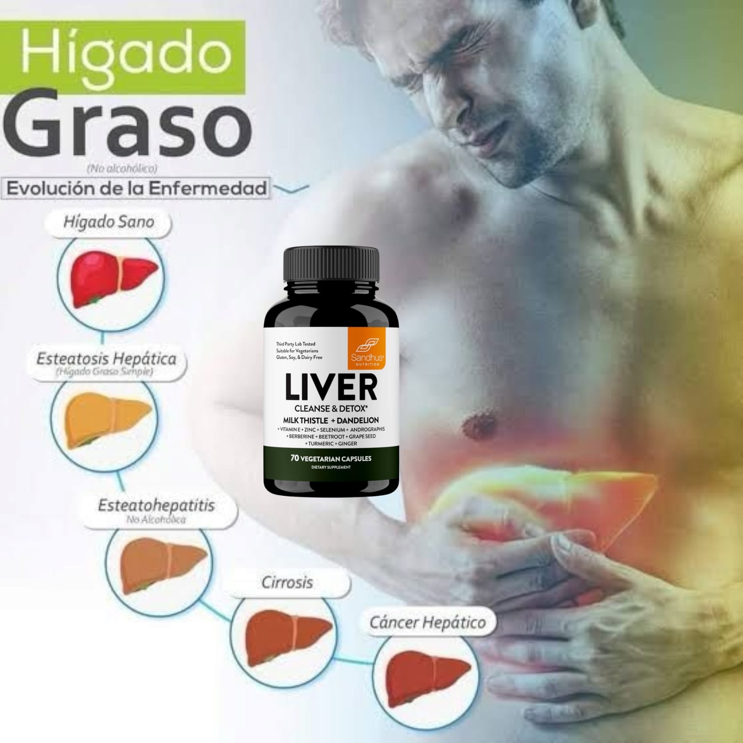Protege tu hígado, mejora tu salud. Cápsulas naturales para reducir los efectos del hígado graso.🌿